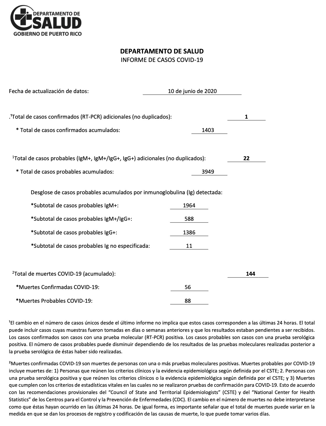 COVID-19 en Puerto Rico, análisis 2020-06-10
