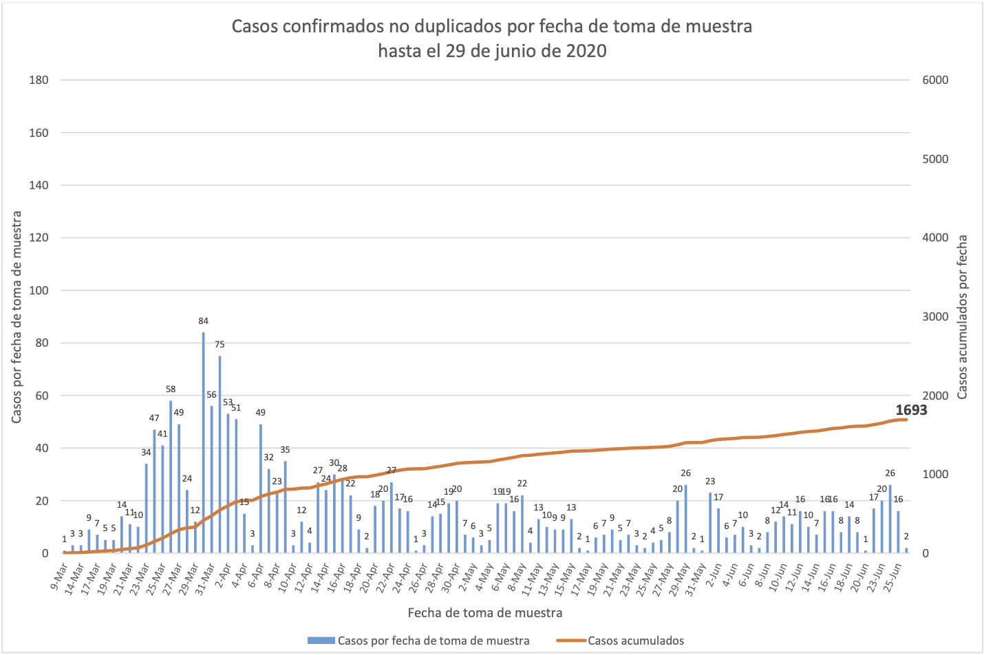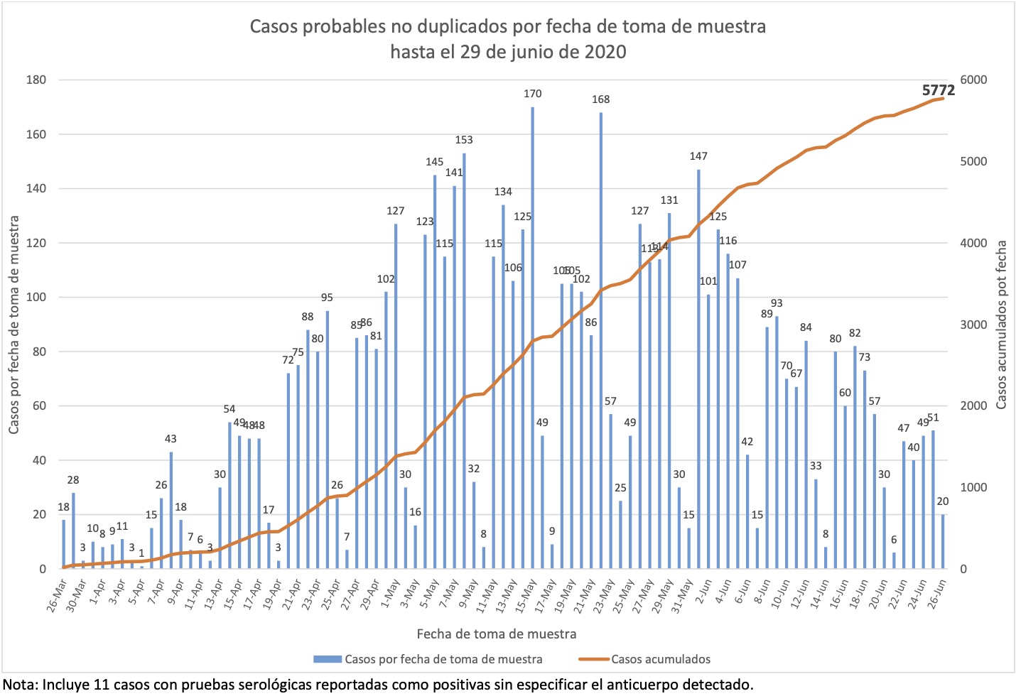 Nótese que esto es por fecha de boletín, no de muestra, y que por lo tanto esta gráfica nos dice cuándo se detectaron los casos, no cuándo sucedieron.