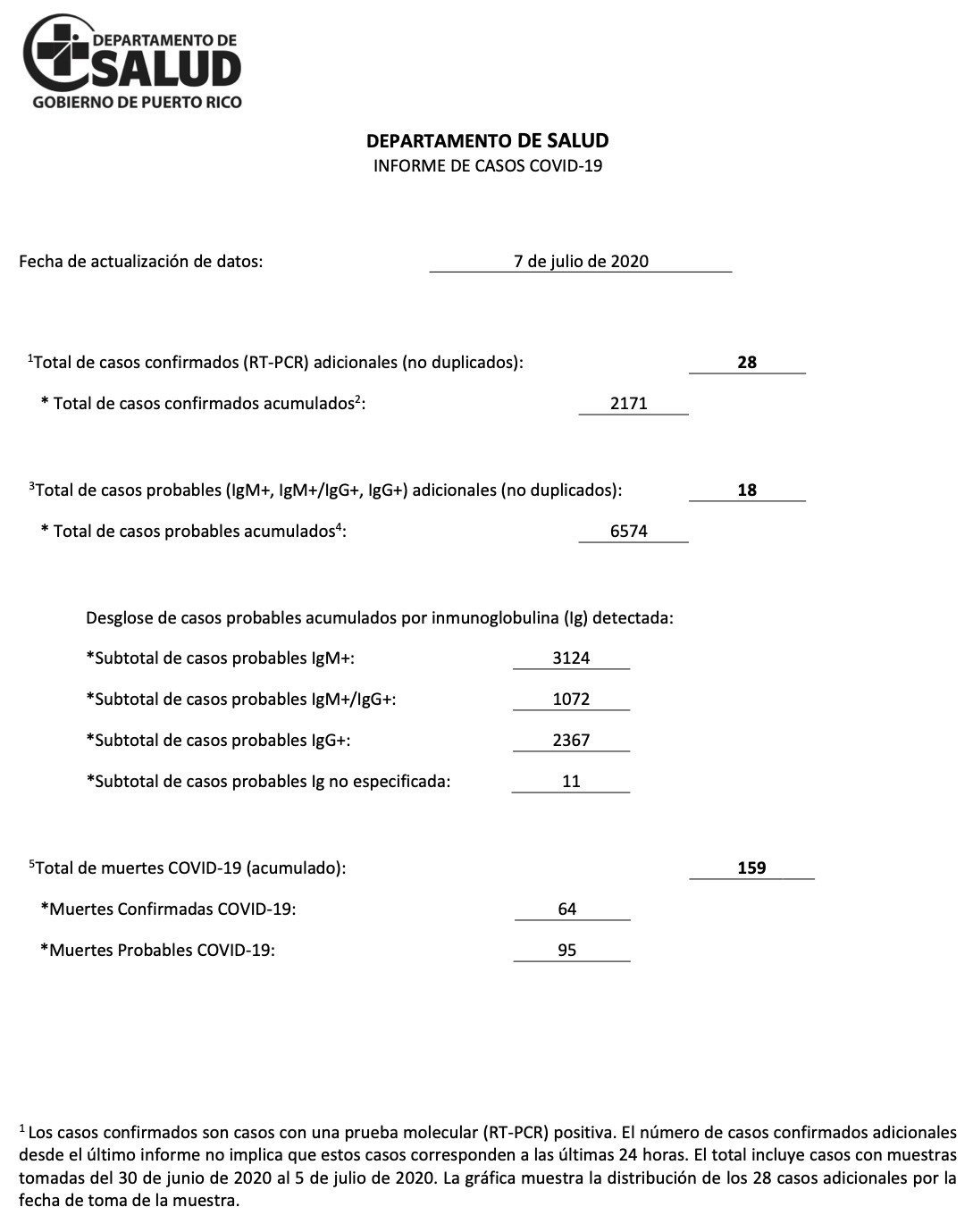 Estos los compartió el Departamento de Salud con periodistas el 9 de julio: