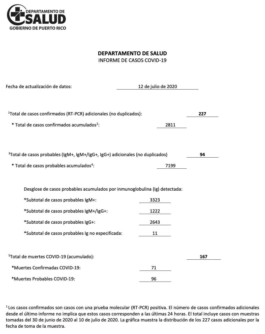 COVID-19 en Puerto Rico, análisis 2020-07-12
