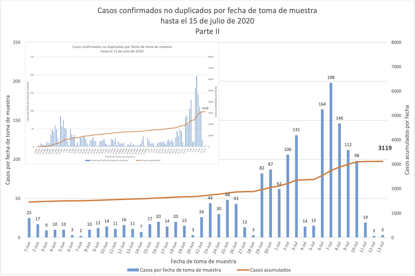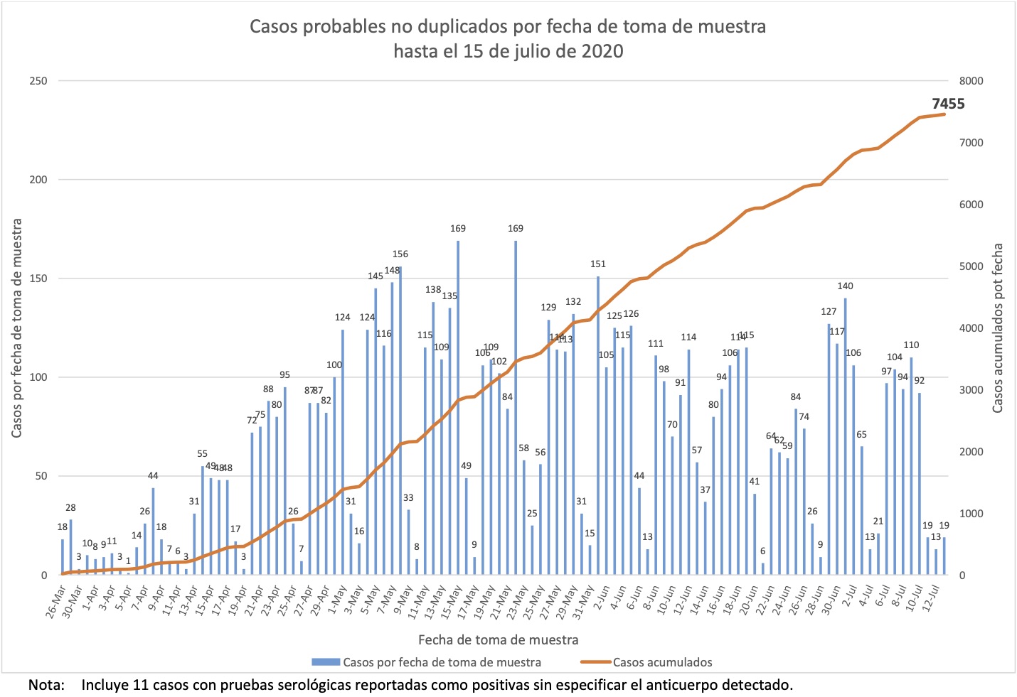Nótese que esto es por fecha de boletín, no de muestra, y que por lo tanto esta gráfica nos dice cuándo se detectaron los casos, no cuándo sucedieron.