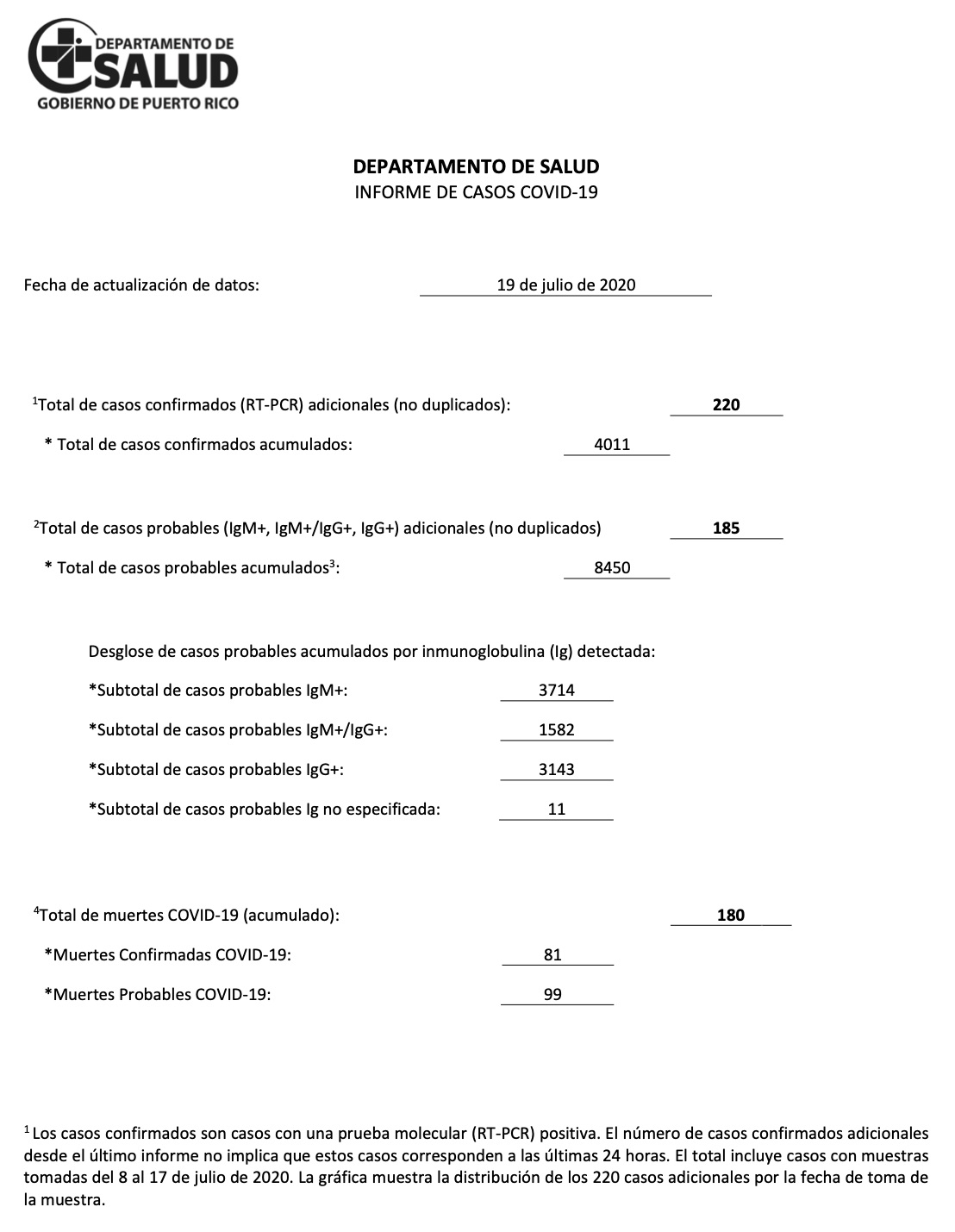 Estos los compartió el Departamento de Salud con periodistas el 9 de julio: