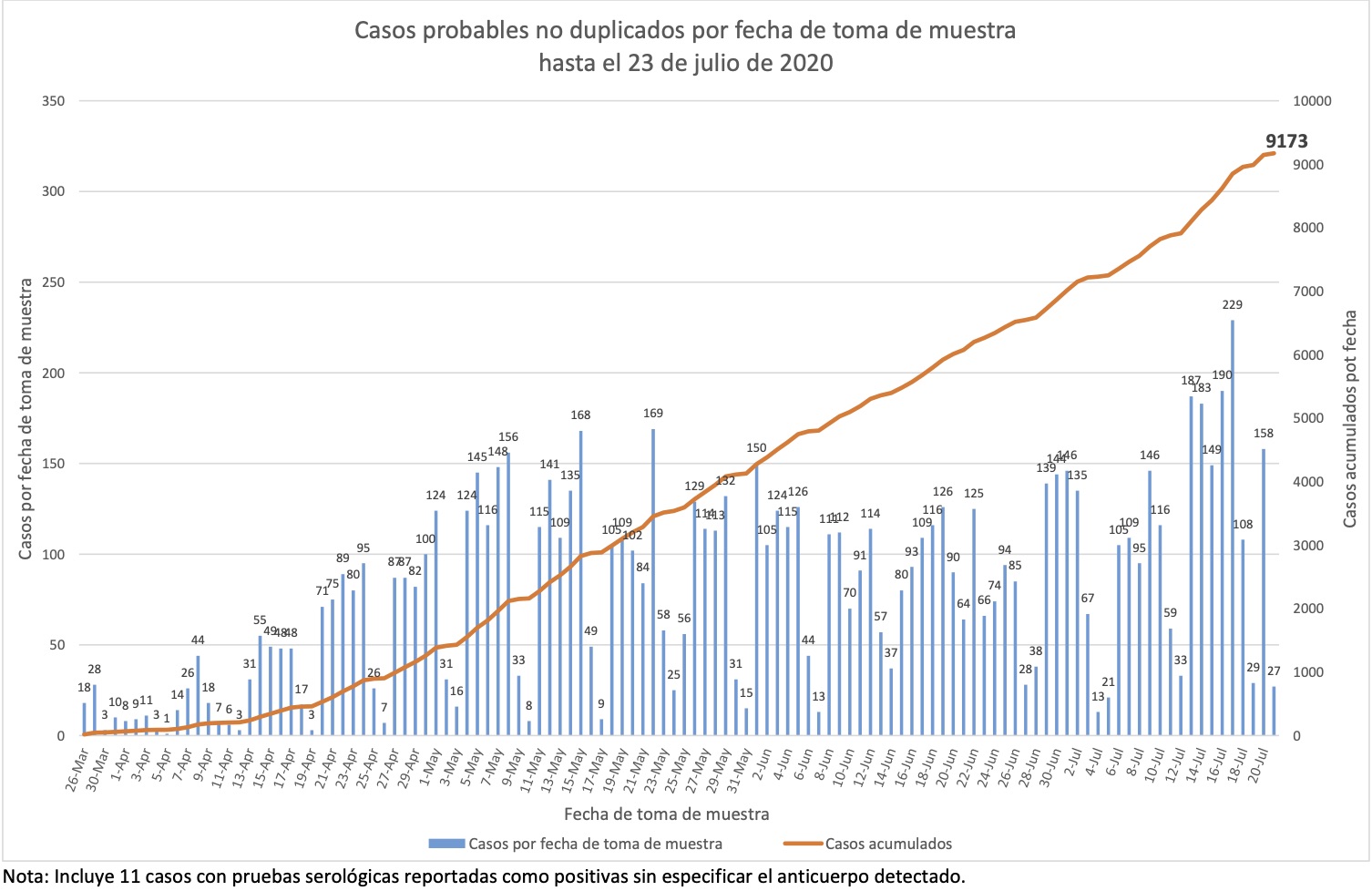 Nótese que esto es por fecha de boletín, no de muestra, y que por lo tanto esta gráfica nos dice cuándo se detectaron los casos, no cuándo sucedieron.