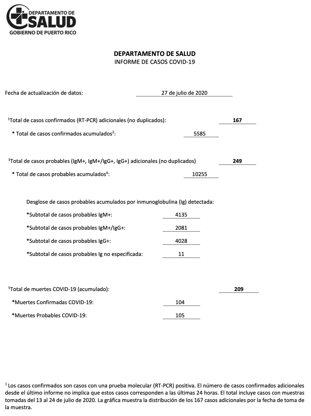 COVID-19 en Puerto Rico, análisis 2020-07-27