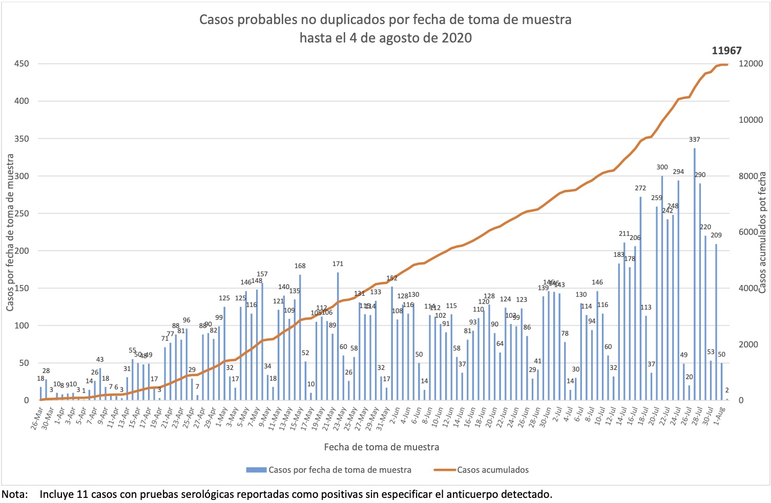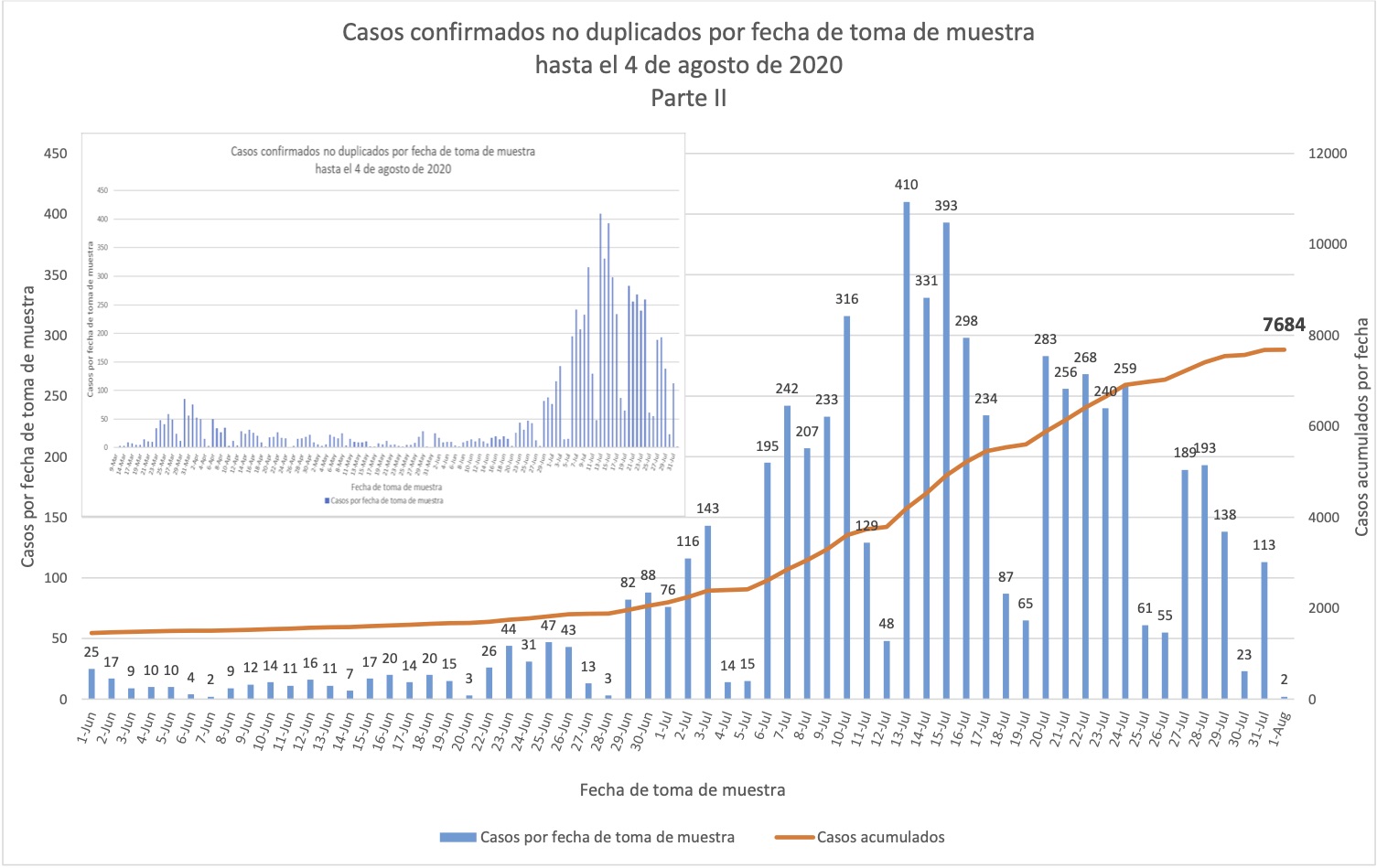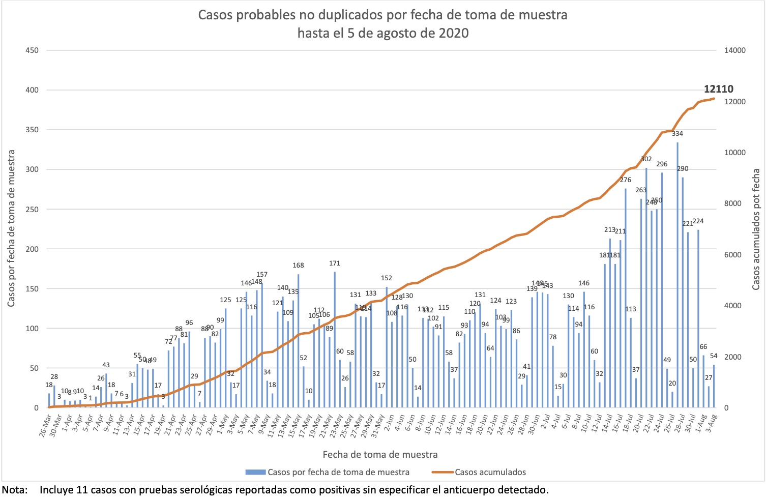 Nótese que esto es por fecha de boletín, no de muestra, y que por lo tanto esta gráfica nos dice cuándo se detectaron los casos, no cuándo sucedieron.