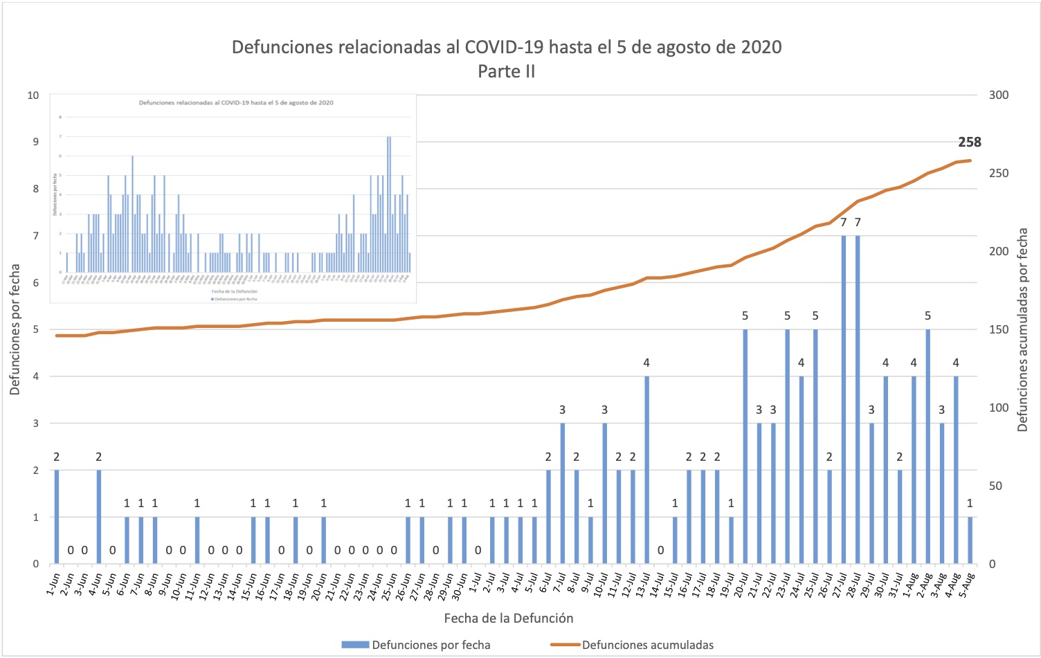 Advertencia: Favor notar que esta página usa las fechas que aparecen a la cabeza de los boletines del Departamento de Salud, pero estos suelen publicarse la mañana del próximo día, y muchas bases de datos y fuentes periodísticas reportan los mismos datos a base de la fecha de publicación.
