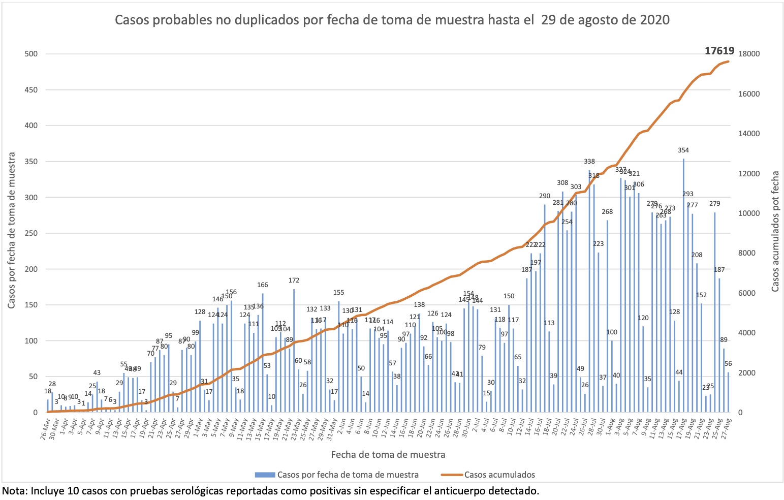 Nótese que esto es por fecha de boletín, no de muestra, y que por lo tanto esta gráfica nos dice cuándo se detectaron los casos, no cuándo sucedieron.