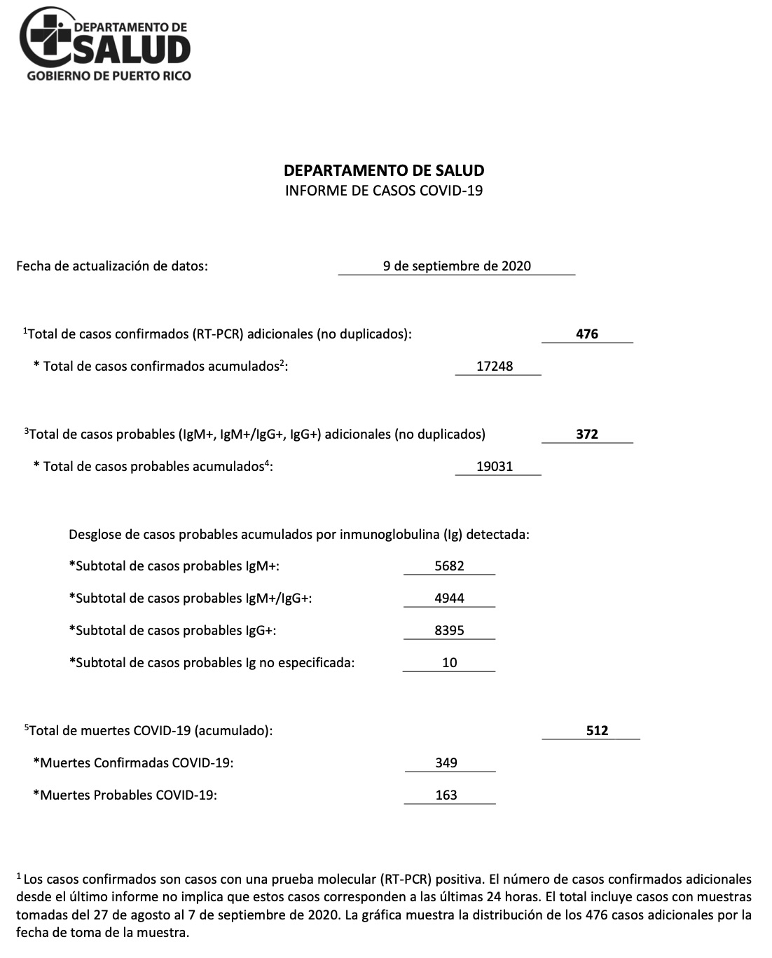 COVID-19 en Puerto Rico, análisis 2020-09-09