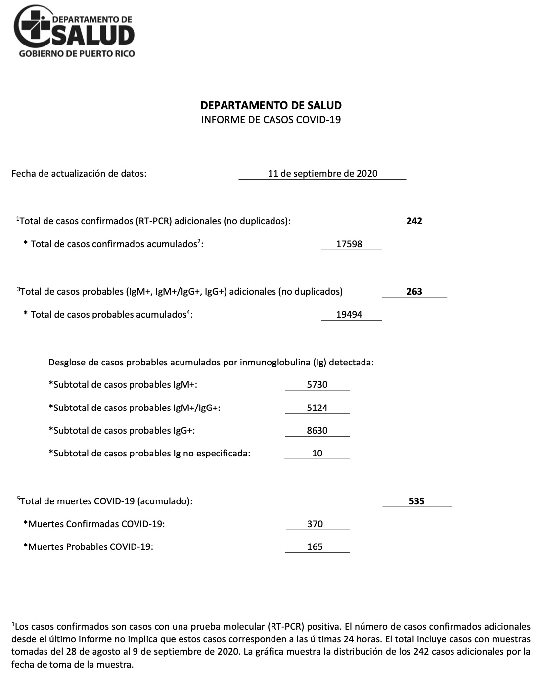 COVID-19 en Puerto Rico, análisis 2020-09-11