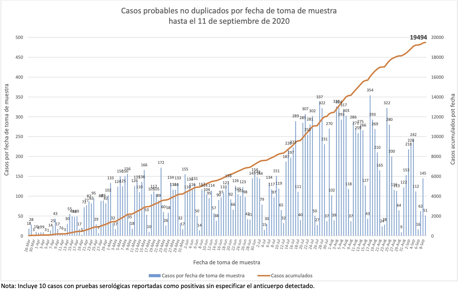 Nótese que esto es por fecha de boletín, no de muestra, y que por lo tanto esta gráfica nos dice cuándo se detectaron los casos, no cuándo sucedieron.