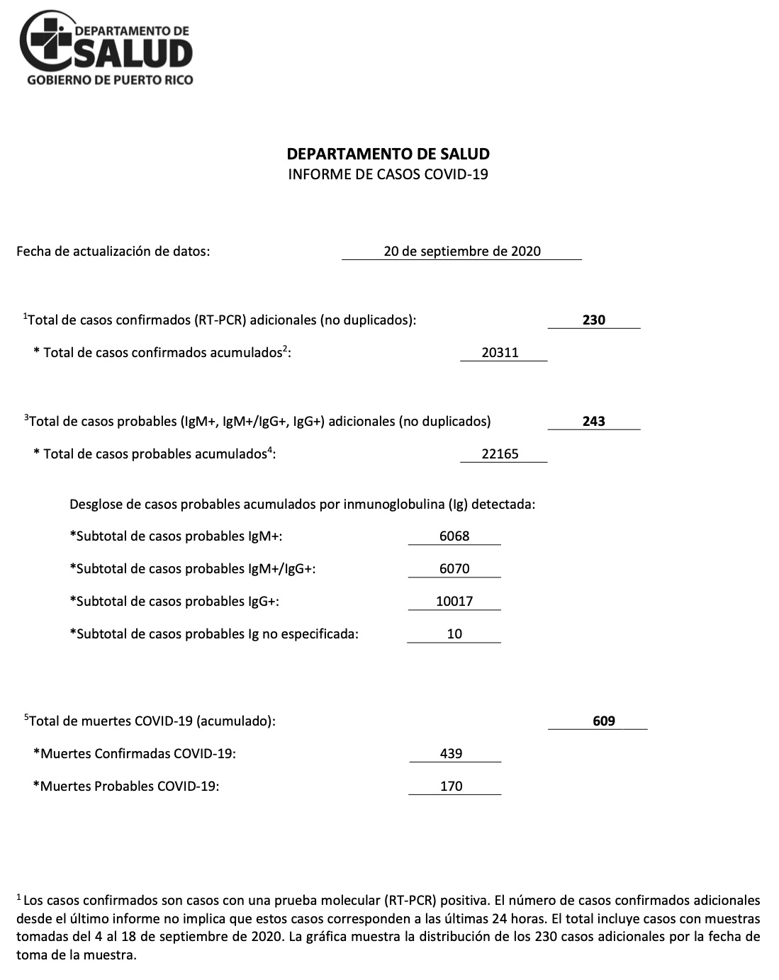 COVID-19 en Puerto Rico, análisis 2020-09-20