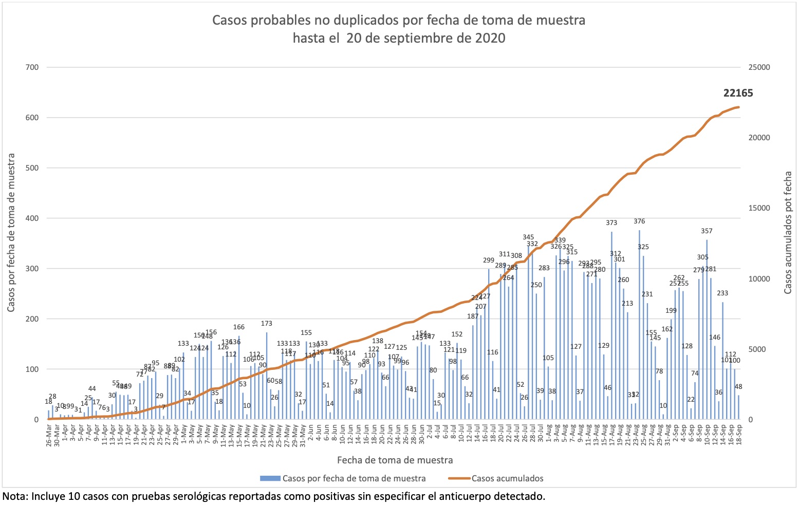 Nótese que esto es por fecha de boletín, no de muestra, y que por lo tanto esta gráfica nos dice cuándo se detectaron los casos, no cuándo sucedieron.