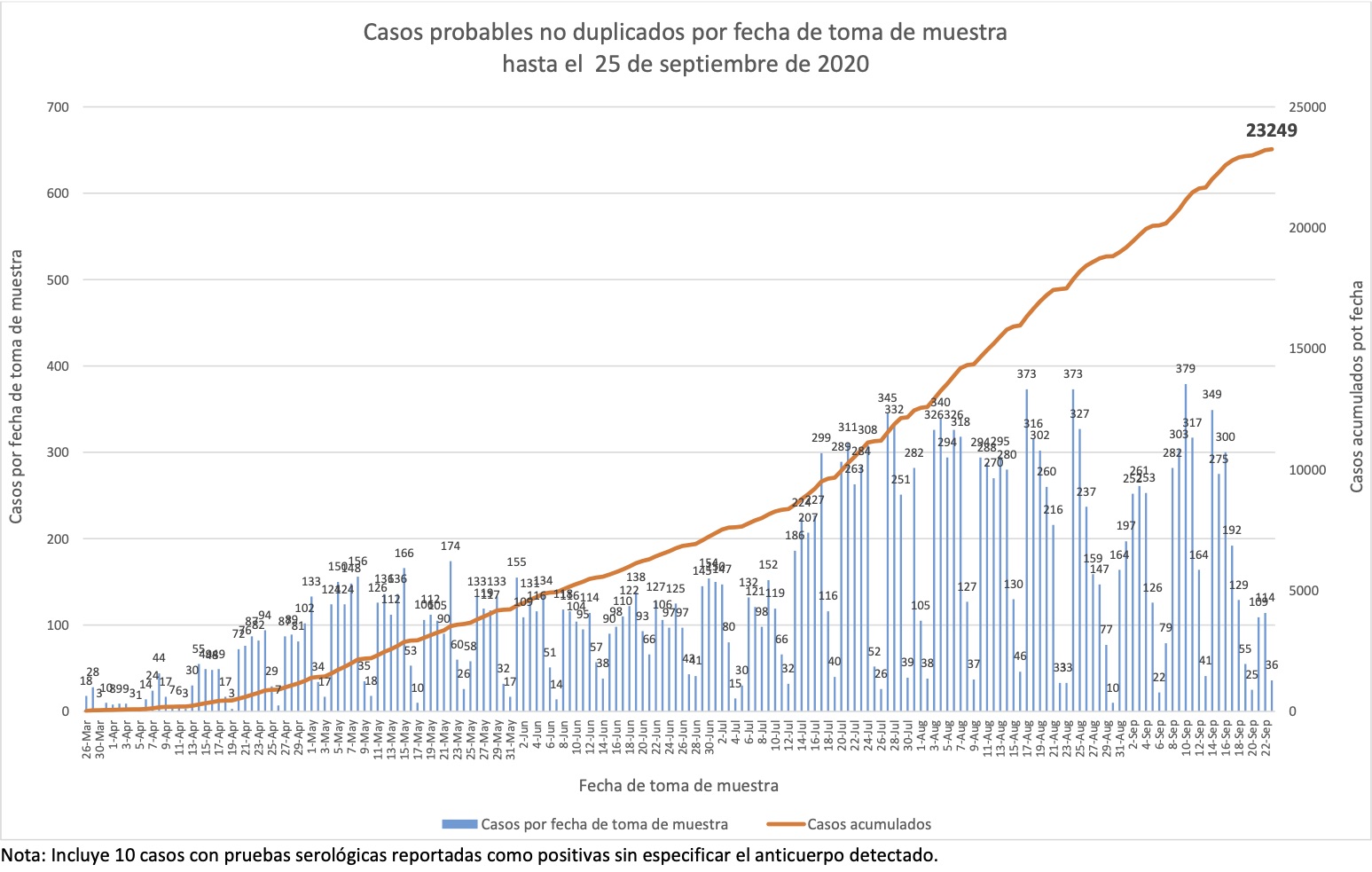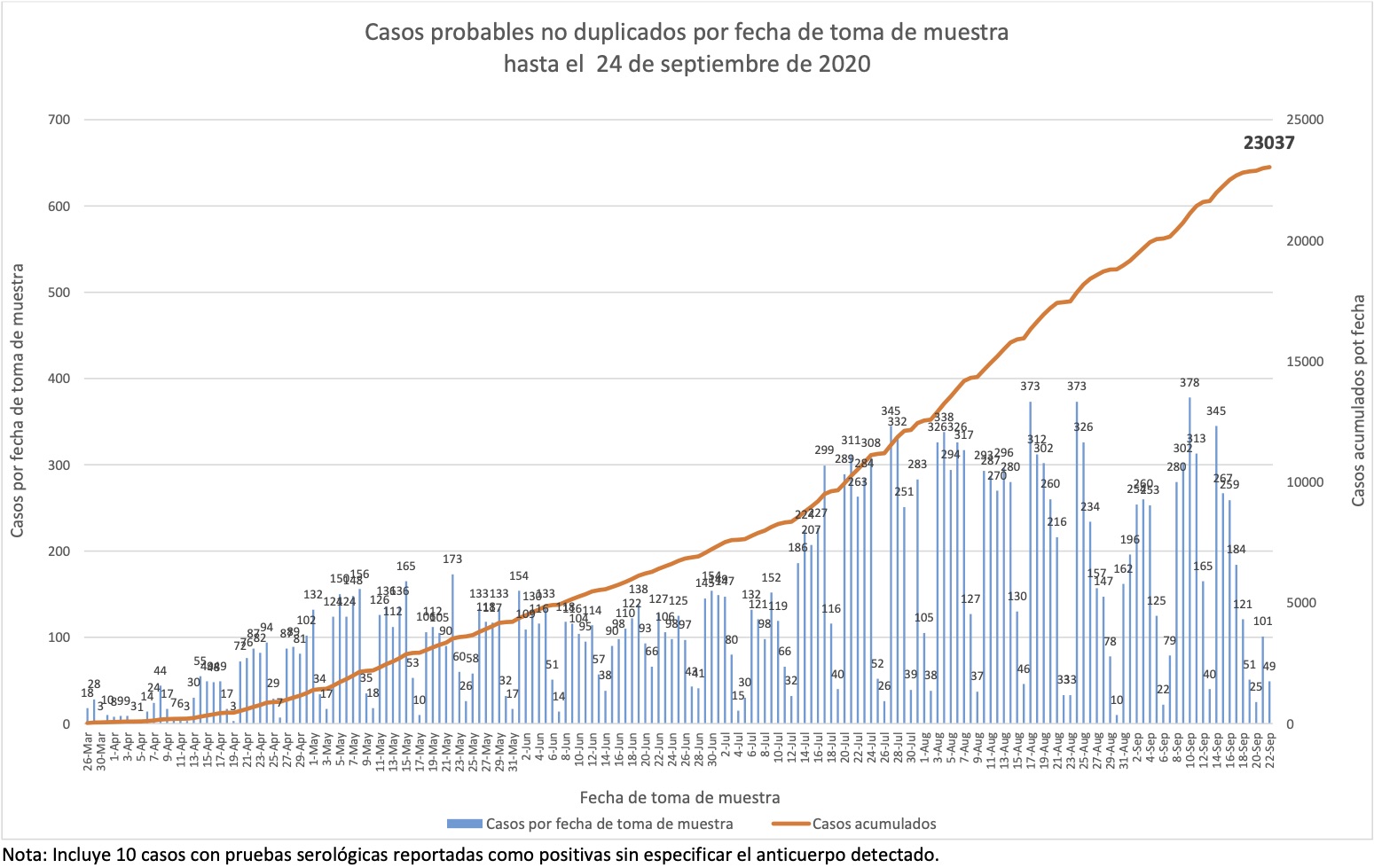 Nótese que esto es por fecha de boletín, no de muestra, y que por lo tanto esta gráfica nos dice cuándo se detectaron los casos, no cuándo sucedieron.